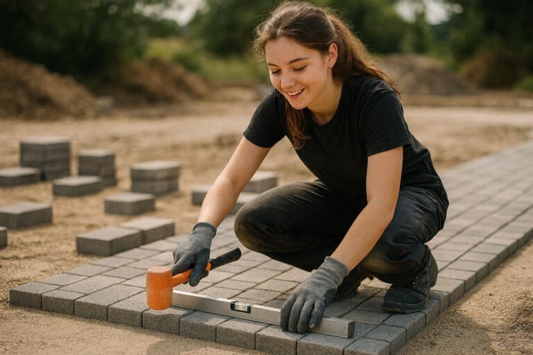 Pflasterer/innen gestalten Wege, Plätze und Außenanlagen mit Natur- oder Betonsteinen. Du planst das Verlegen, schaffst exakte Untergründe und setzt die Steine passgenau ein. Der Beruf ist handwerklich anspruchsvoll, kreativ und abwechslungsreich. Du siehst sofort, wie dein Werk die Umgebung verschönert und funktional verbessert.