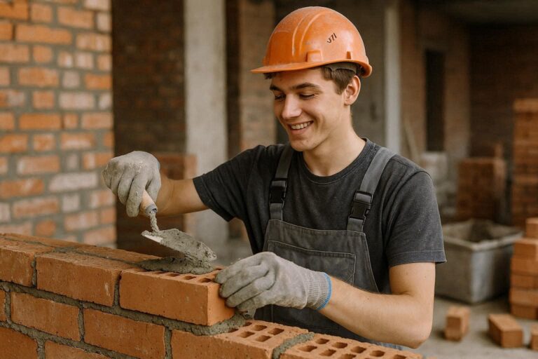 Als Maurer/in baust du die Basis für Gebäude: Wände, Fundamente, Decken und mehr. Du arbeitest mit Ziegeln, Beton und Natursteinen, mischst Mörtel und setzt Bauelemente präzise ein. Der Beruf ist körperlich aktiv, handwerklich anspruchsvoll und erfordert Genauigkeit sowie technisches Verständnis. Du erlebst den kompletten Entstehungsprozess eines Bauwerks und siehst sofort die Ergebnisse deiner Arbeit. Jeder Tag ist abwechslungsreich, denn kein Bauprojekt ist wie das andere.